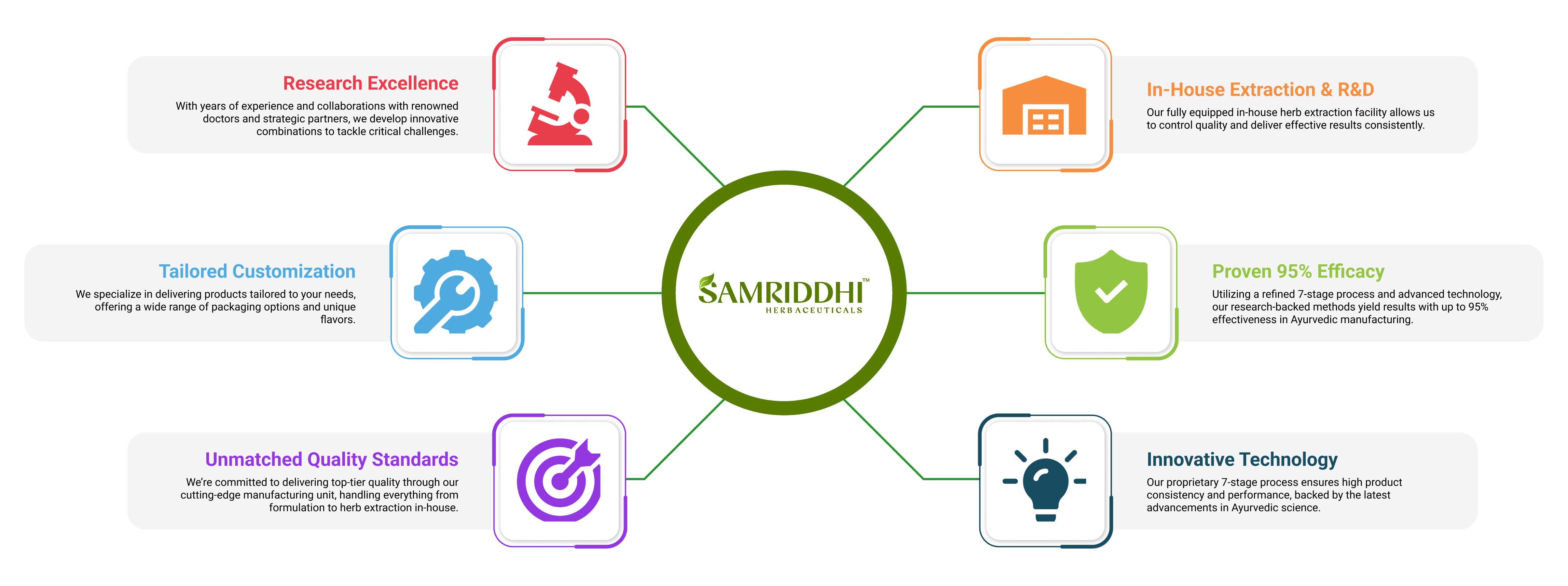 At Samriddhi Herbaceuticals, we boast state-of-the-art facilities where tradition meets innovation. Our modern manufacturing plants adhere to stringent quality standards, ensuring each product embodies the purity and efficacy of Ayurvedic wisdom. Experience excellence in natural wellness with our state-of-the-art facilities.